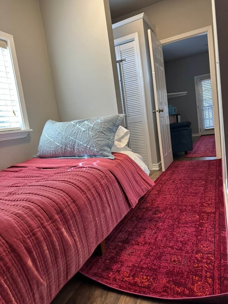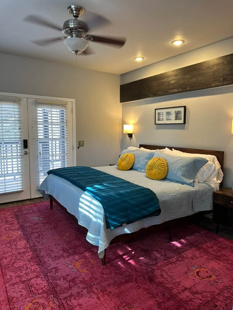 Bright and inviting, filled with natural light and an uplifting atmosphere. With a plush King and two twins that fit up to four people, The Bloom will keep you cozy. It features a private deck, a dresser, a private bath, a closet, a plush chair, a small fridge, and a smart TV.